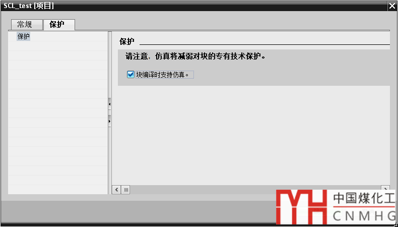 我們將上一篇文章(西門子SCL編程實例-創(chuàng)建基于循環(huán)中斷的定時器)的示例代碼下載到虛擬的PLC控制器中。下載之前要在項目的【屬性】頁面【保護(hù)】選項卡中勾選【塊編譯時支持仿真】,如下圖所示: