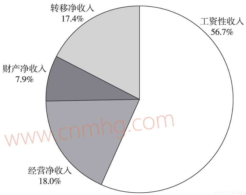 圖2-1 2015年全國(guó)居民人均可支配收入來(lái)源構(gòu)成