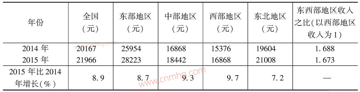 表2-3 2014~2015年全國(guó)居民地區(qū)間人均可支配收入差距